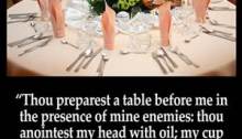 Psalm 23:5 tells us God prepares a table before us in the presence of our enemies. So many times throughout our life if we walk with the Lord we will see our enemy taken out of the way even when they seem larger than life that in Gods time His will is done and His…