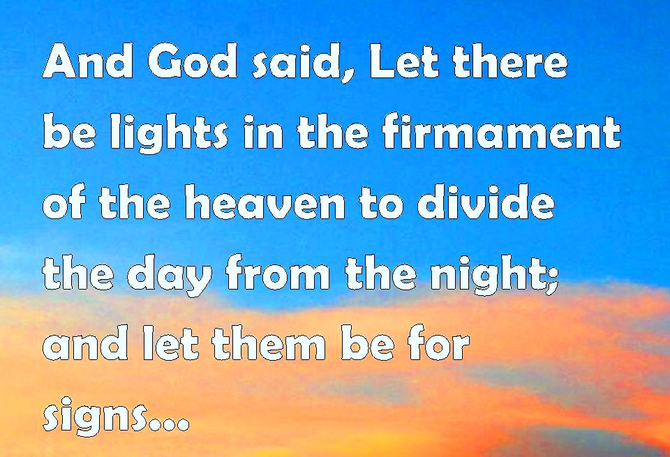 The very first sign given in the earth was when God created the heavens and the earth, and the signs were the dividing of the night and the day for seasons and years! (Genesis 1:14). 14 And God said, Let there be lights in the firmament of the heaven to divide the day from the night; and let them be for signs, and for seasons, and for days, and years: