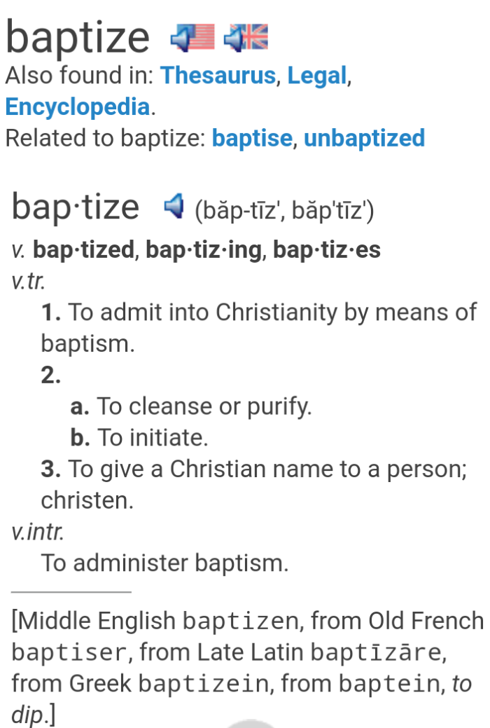 Well, I looked up the word “baptism” and was very surprised to find definitions even from popular dictionaries that described it as a ritual to accept one into Christianity. Very little about purification.