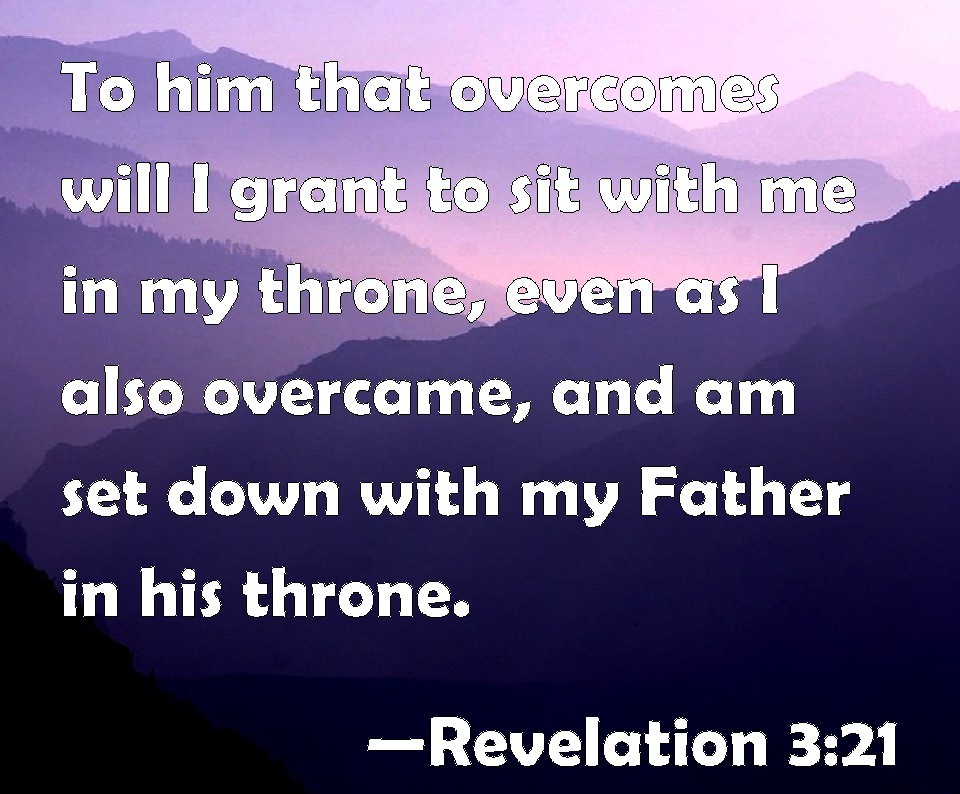 May we be over comers as our Lord has asked us to be so that we too may sit with Him in His throne!(Revelation 3:18-22). 18 I counsel thee to buy of me gold tried in the fire, that thou mayest be rich; and white raiment, that thou mayest be clothed, and that the shame of thy nakedness do not appear; and anoint thine eyes with eyesalve, that thou mayest see.19 As many as I love, I rebuke and chasten: be zealous therefore, and repent.20 Behold, I stand at the door, and knock: if any man hear my voice, and open the door, I will come in to him, and will sup with him, and he with me.21 To him that overcometh will I grant to sit with me in my throne, even as I also overcame, and am set down with my Father in his throne.22 He that hath an ear, let him hear what the Spirit saith unto the churches.