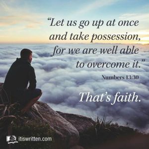 Everyone has their own opinion and way of seeing things, as the saying goes some see a glass half full while others see it as half empty. When Caleb and Joshua who were part of twelve that were sent to view the promised land their report was different from the others. Ten saw a land full of giants who were stronger than them, but Caleb and Joshua’s report was one very positive and with God would be able to overcome them. ( Numbers 13:26-33 ). 26 And they went and came to Moses, and to Aaron, and to all the congregation of the children of Israel, unto the wilderness of Paran, to Kadesh; and brought back word unto them, and unto all the congregation, and shewed them the fruit of the land. 27 And they told him, and said, We came unto the land whither thou sentest us, and surely it floweth with milk and honey; and this [is] the fruit of it. 28 Nevertheless the people [be] strong that dwell in the land, and the cities [are] walled, [and] very great: and moreover we saw the children of Anak there. 29 The Amalekites dwell in the land of the south: and the Hittites, and the Jebusites, and the Amorites, dwell in the mountains: and the Canaanites dwell by the sea, and by the coast of Jordan. 30 And Caleb stilled the people before Moses, and said, Let us go up at once, and possess it; for we are well able to overcome it. 31 But the men that went up with him said, We be not able to go up against the people; for they [are] stronger than we. 32 And they brought up an evil report of the land which they had searched unto the children of Israel, saying, The land, through which we have gone to search it, [is] a land that eateth up the inhabitants thereof; and all the people that we saw in it [are] men of a great stature. 33 And there we saw the giants, the sons of Anak, [which come] of the giants: and we were in our own sight as grasshoppers, and so we were in their sight.