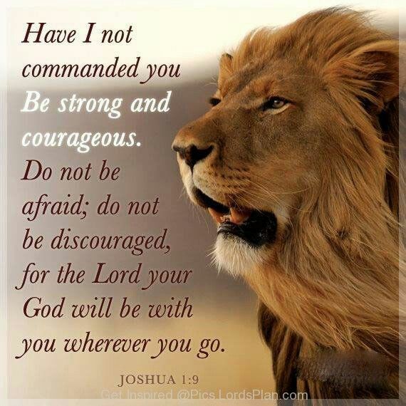 After the death of Moses God told Joshua how He was with Moses that He would also be with him. He was told to be strong and of a good courage! (Joshua 1:5-9) 5 There shall not any man be able to stand before thee all the days of thy life: as I was with Moses, so I will be with thee: I will not fail thee, nor forsake thee. 6 Be strong and of a good courage: for unto this people shalt thou divide for an inheritance the land, which I sware unto their fathers to give them. 7 Only be thou strong and very courageous, that thou mayest observe to do according to all the law, which Moses my servant commanded thee: turn not from it to the right hand or to the left, that thou mayest prosper whithersoever thou goest. 8 This book of the law shall not depart out of thy mouth; but thou shalt meditate therein day and night, that thou mayest observe to do according to all that is written therein: for then thou shalt make thy way prosperous, and then thou shalt have good success. 9 Have not I commanded thee? Be strong and of a good courage; be not afraid, neither be thou dismayed: for the LORD thy God is with thee whithersoever thou goest.