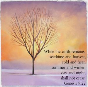 People are so worried about global warming as though there will no longer be a cold season, but as much as science is able to accomplish we need to believe what scripture tells us which is that while the earth remains there will always be heat and cold, day and night, and the seasons will remain. (Genesis 8:22). While the earth remaineth, seedtime and harvest, and cold and heat, and summer and winter, and day and night shall not cease.