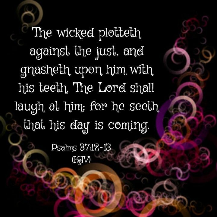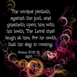 The wicked plotteth against the just, and gnasheth upon him with his teeth. The Lord shall laugh at him: for he seeth that his day is coming.(Psalm 37:12,13)