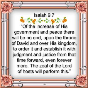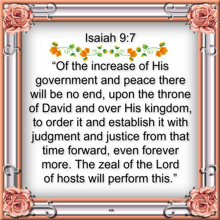 It is easy to be discouraged as a Christian in todays world for we have legislature passing laws which we as believers know are against the just ways of God whom we serve. But through eyes of Faith we find the hope of a government that will have no end set forth by a righteous God! (Isaiah 9:6,7) For unto us a child is born,unto us a son is given: and the government shall be upon his shoulder: and his name shall be called Wonderful, Counsellor, The mighty God, The everlasting Father, The Prince of Peace. Of the increase of his government and peace there shall be no end, upon the throne of David and upon his kingdom, to order it, and to establish it with judgment and with justice from henceforth even for ever. The zeal of the Lord of hosts will perform it.