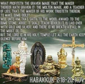 • Yes there are many other idols that we would never even consider, and as you say the enemy is smart and his motto is to kill,steal and destroy of which he has honed to a T. I truly did ask questions at 8 because I was always taught about how Jesus loved me yet was always praying to mary? it made no sense. Stay Strong.