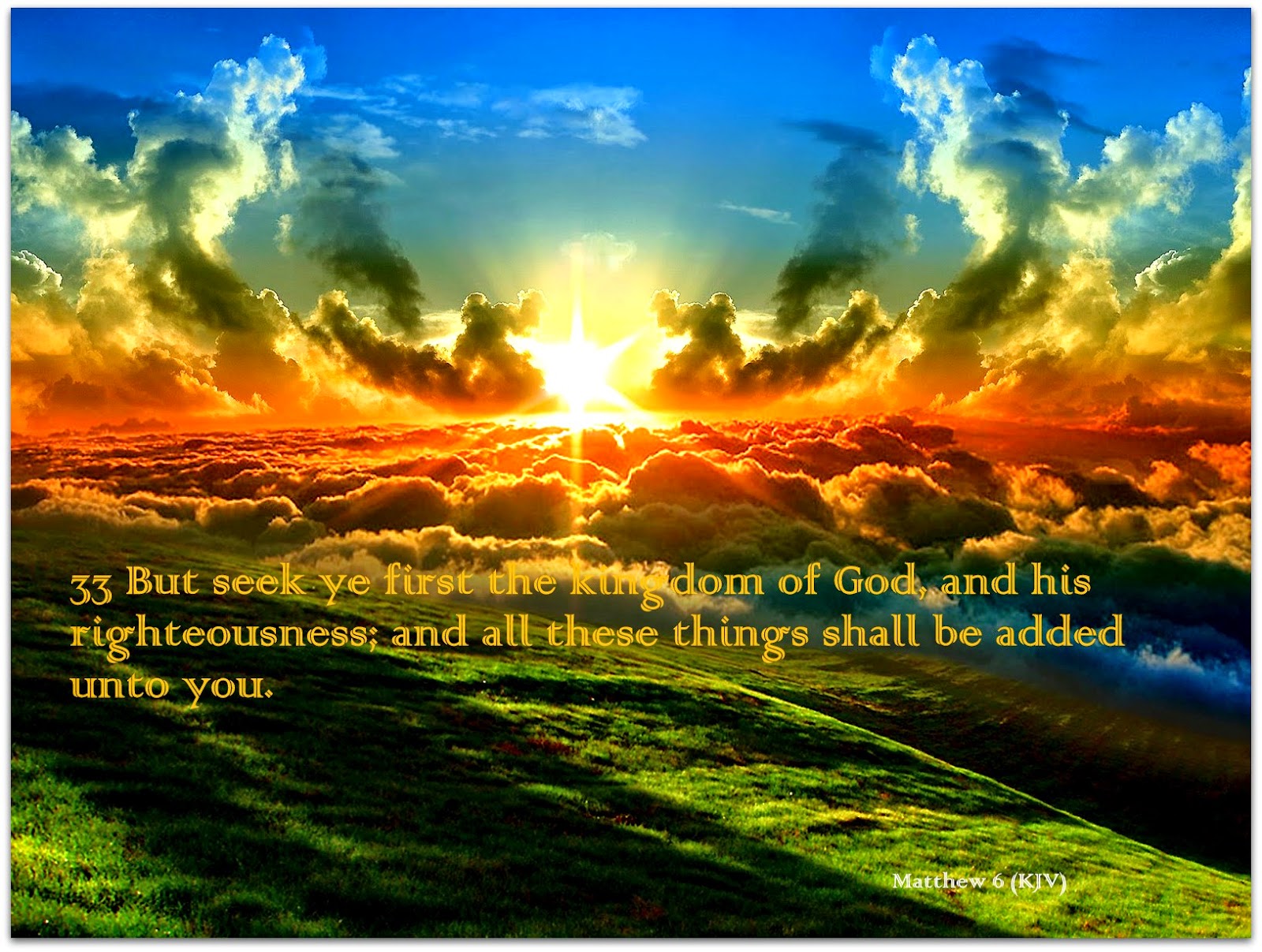 The kingdom of God is to seek His righteousness for our life, and in doing so all our needs will be met. Many spend their lives chasing after all this world has to offer, when they should be looking to God for their needs (Matthew 6:28-34) And why take ye thought for raiment? Consider the lilies of the field, how they grow; they toil not, neither do they spin: And yet I say unto you, That even Solomon in all his glory was not arrayed like one of these. Wherefore, if God so clothe the grass of the field, which to day is, and to morrow is cast into the oven, shall he not much more clothe you, O ye of little faith? Therefore take no thought, saying, What shall we eat? or, What shall we drink? or, Wherewithal shall we be clothed? (For after all these things do the Gentiles seek:) for your heavenly Father knoweth that ye have need of all these things. But seek ye first the kingdom of God, and his righteousness; and all these things shall be added unto you. Take therefore no thought for the morrow: for the morrow shall take thought for the things of itself. Sufficient unto the day is the evil thereof.