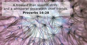 A talebearer is one who has a tale to tell and bears no remorse to tell it. It’s almost as if its their job if they don’t get that tale out before the day is over, and a sense of pride is given such a person and we all know what God thinks of a person full of pride. In fact we know in Proverbs God lists seven things which he hates and one is to sow discord among brethren, and nothing separates people more than a gossip spreading their news about another! (Proverbs 6:19).A false witness that speaketh lies, and he that soweth discord among brethren.