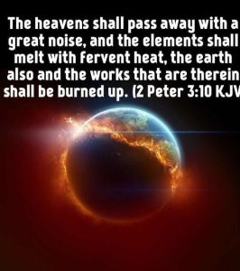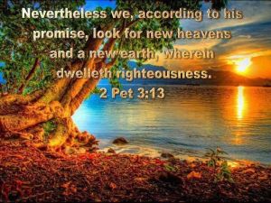 Just as the flood which overtook the first earth age, scripture tells of the earth we now live in as being reserved unto fire against the day of judgment and perdition of ungodly men. NOW is the time for repentance and NOW is the time to make sure the Lord is the center of your life, for if all were to be taken away are you ready for the new earth and heavens where only righteousness will dwell??? There will be those who will scoff at this message, but the word of God stands true and will come to pass whether believed or not. (2 Peter 3:1-13) This second epistle, beloved, I now write unto you; in both which I stir up your pure minds by way of remembrance: That ye may be mindful of the words which were spoken before by the holy prophets, and of the commandment of us the apostles of the Lord and Saviour: Knowing this first, that there shall come in the last days scoffers, walking after their own lusts, And saying, Where is the promise of his coming? for since the fathers fell asleep, all things continue as they were from the beginning of the creation. For this they willingly are ignorant of, that by the word of God the heavens were of old, and the earth standing out of the water and in the water: Whereby the world that then was, being overflowed with water, perished: But the heavens and the earth, which are now, by the same word are kept in store, reserved unto fire against the day of judgment and perdition of ungodly men. But, beloved, be not ignorant of this one thing, that one day is with the Lord as a thousand years, and a thousand years as one day. The Lord is not slack concerning his promise, as some men count slackness; but is longsuffering to us-ward, not willing that any should perish, but that all should come to repentance. But the day of the Lord will come as a thief in the night; in the which the heavens shall pass away with a great noise, and the elements shall melt with fervent heat, the earth also and the works that are therein shall be burned up. Seeing then that all these things shall be dissolved, what manner of persons ought ye to be in all holy conversation and godliness, Looking for and hasting unto the coming of the day of God, wherein the heavens being on fire shall be dissolved, and the elements shall melt with fervent heat? Nevertheless we, according to his promise, look for new heavens and a new earth, wherein dwelleth righteousness.