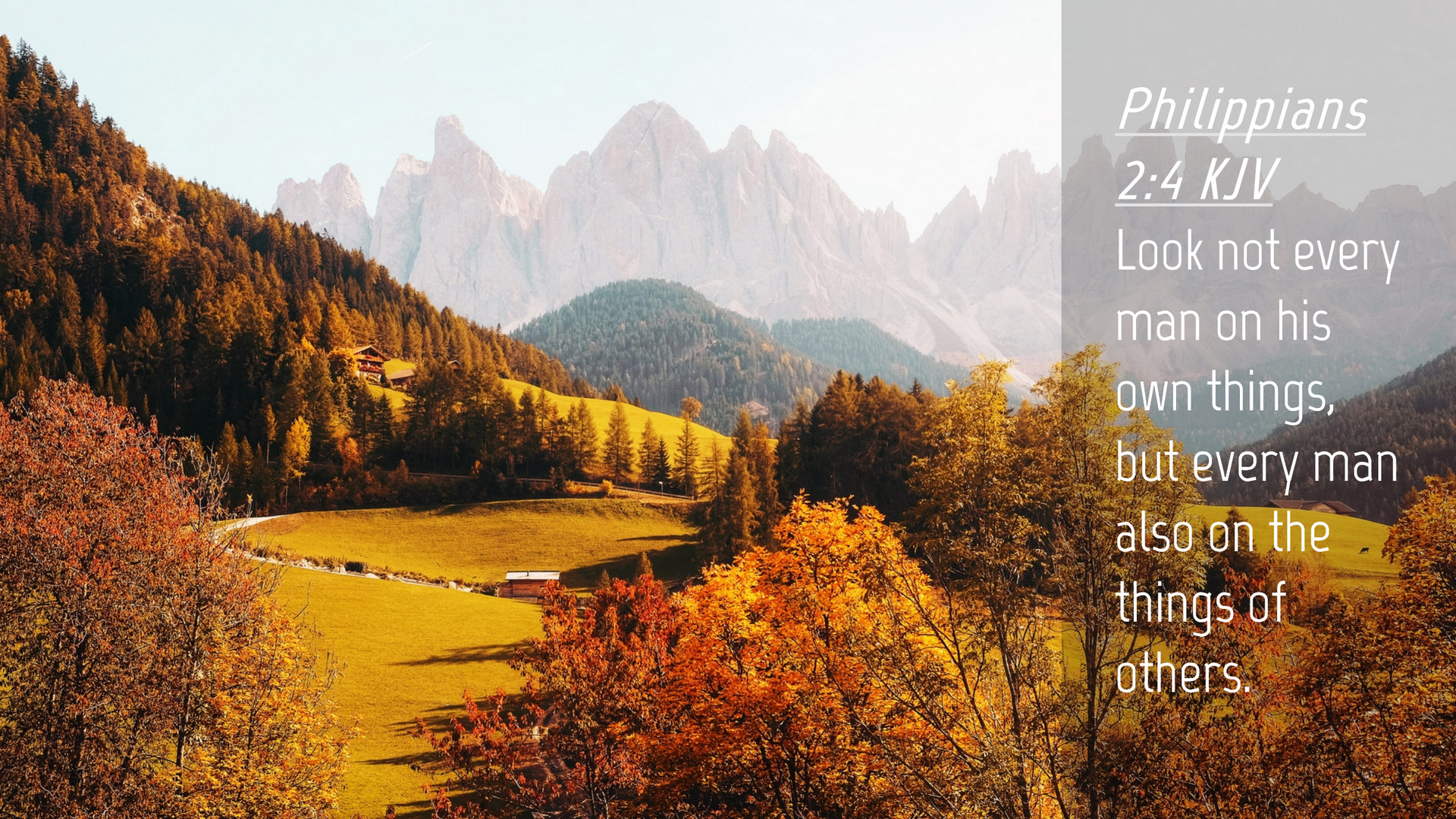 Although a lot of people start out life pursuing what this life offers them, it is after learning it is more blessed to give than to receive do we see Gods way more clearly ( Philippians 2:1-4) If there be therefore any consolation in Christ, if any comfort of love, if any fellowship of the Spirit, if any bowels and mercies, Fulfil ye my joy, that ye be likeminded, having the same love, being of one accord, of one mind. Let nothing be done through strife or vainglory; but in lowliness of mind let each esteem other better than themselves. Look not every man on his own things, but every man also on the things of others.