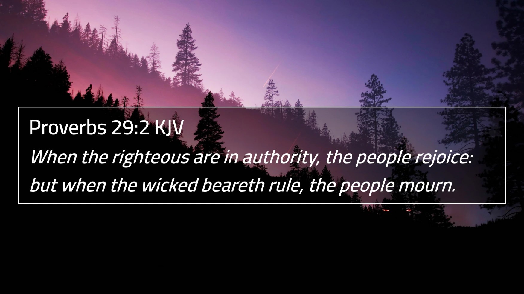 When the righteous are in authority, the people rejoice: but when the wicked beareth rule, the people mourn. (Proverbs 29:2).