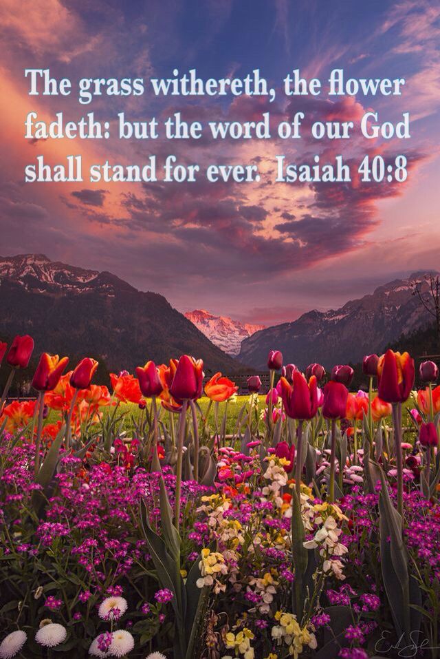 We are as grass which withereth, for we are upon this earth for a very short span of time. Though our life comes and goes the eternal word of God will stand forever! (Isaiah 40:6-8) The voice said, Cry. And he said, What shall I cry? All flesh is grass, and all the goodliness thereof is as the flower of the field: The grass withereth, the flower fadeth: because the spirit of the Lord bloweth upon it: surely the people is grass. The grass withereth, the flower fadeth: but the word of our God shall stand for ever. (1 Peter 1:24,25).