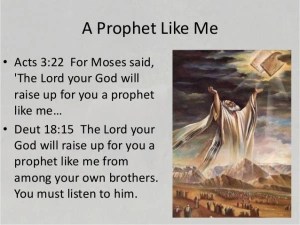 For Moses truly said unto the fathers, A prophet shall the Lord your God raise up unto you of your brethren, like unto me; him shall ye hear in all things whatsoever he shall say unto you. And it shall come to pass, that every soul, which will not hear that prophet, shall be destroyed from among the people. Yea, and all the prophets from Samuel and those that follow after, as many as have spoken, have likewise foretold of these days. Ye are the children of the prophets, and of the covenant which God made with our fathers, saying unto Abraham, And in thy seed shall all the kindreds of the earth be blessed. Unto you first God, having raised up his Son Jesus, sent him to bless you, in turning away every one of you from his iniquities.( Acts 3:22-26 ).