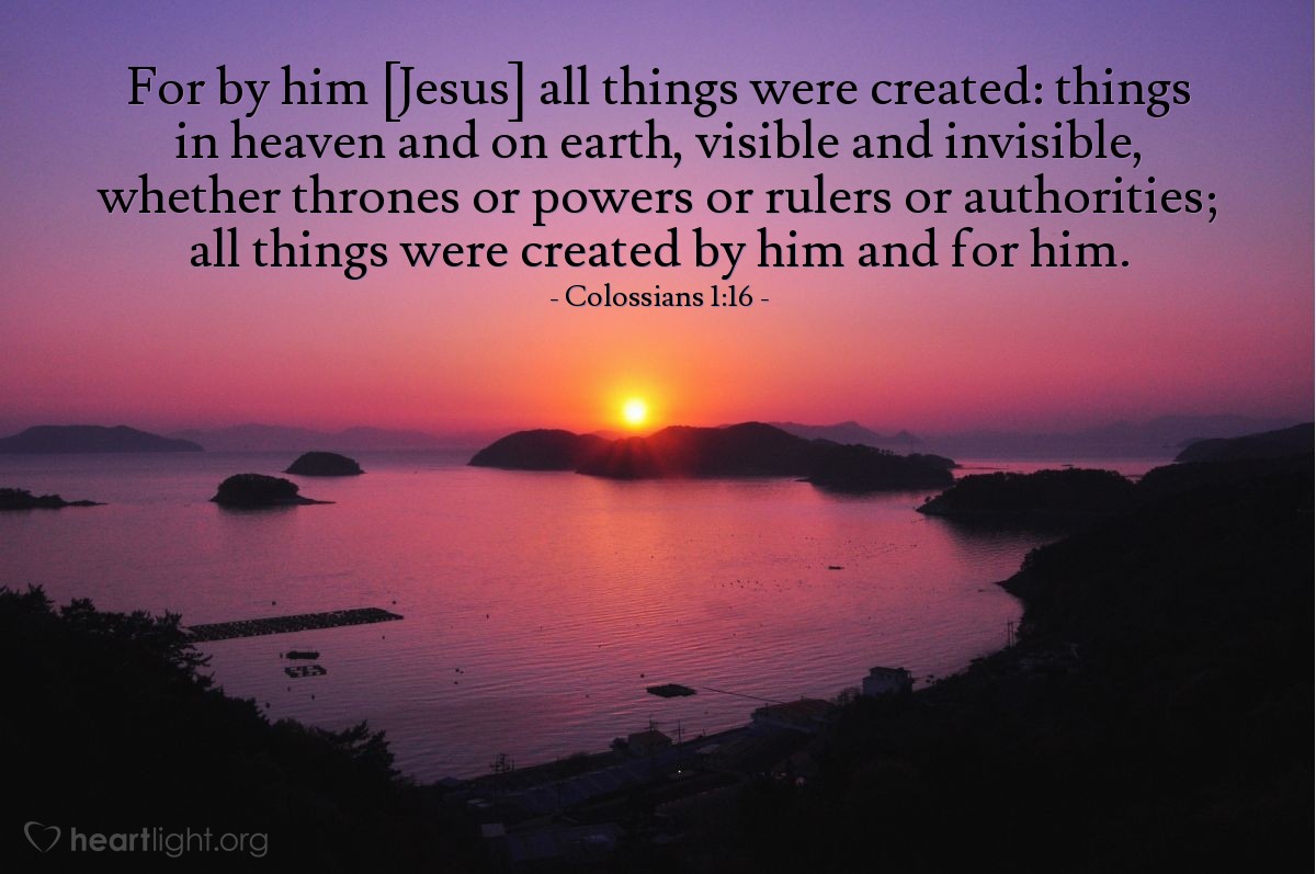 Colossians 1:16-19 For by him were all things created, that are in heaven, and that are in earth, visible and invisible, whether they be thrones, or dominions, or principalities, or powers: all things were created by him, and for him: And he is before all things, and by him all things consist. And he is the head of the body, the church: who is the beginning, the firstborn from the dead; that in all things he might have the preeminence. For it pleased the Father that in him should all fulness dwell;