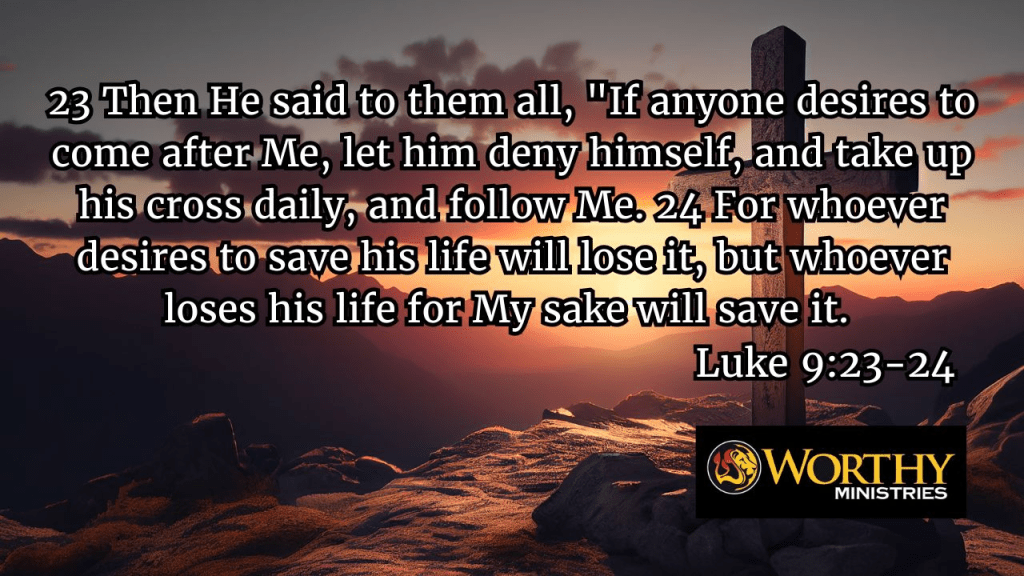 Luke 9:23-24 Then He said to them all, “If anyone desires to come after Me, let him deny himself, and take up his cross daily, and follow Me. 24 For whoever desires to save his life will lose it, but whoever loses his life for My sake will save it.