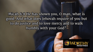 Micah 6:8 He has shown you, O man, what is good. And what does Jehovah require of you but to do justice and to love mercy and to walk humbly with your God?