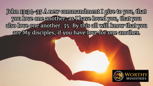 John 13:34–35 A new commandment I give to you, that you love one another; as I have loved you, that you also love one another. 35 By this all will know that you are My disciples, if you have love for one another.”