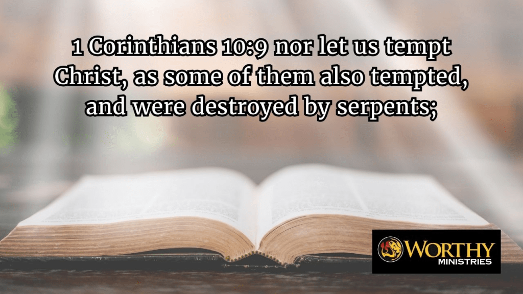 KJV(i) 1 Moreover, brethren, I would not that ye should be ignorant, how that all our fathers were under the cloud, and all passed through the sea; 2 And were all baptized unto Moses in the cloud and in the sea; 3 And did all eat the same spiritual meat; 4 And did all drink the same spiritual drink: for they drank of that spiritual Rock that followed them: and that Rock was Christ. 5 But with many of them God was not well pleased: for they were overthrown in the wilderness. 6 Now these things were our examples, to the intent we should not lust after evil things, as they also lusted. 7 Neither be ye idolaters, as were some of them; as it is written, The people sat down to eat and drink, and rose up to play. 8 Neither let us commit fornication, as some of them committed, and fell in one day three and twenty thousand. 9 Neither let us tempt Christ, as some of them also tempted, and were destroyed of serpents. 10 Neither murmur ye, as some of them also murmured, and were destroyed of the destroyer. 11 Now all these things happened unto them for ensamples: and they are written for our admonition, upon whom the ends of the world are come. 12 Wherefore let him that thinketh he standeth take heed lest he fall.