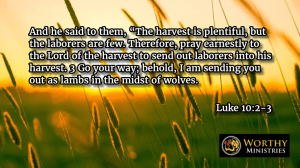 Luke 10:2-3 Then He said to them, “The harvest truly is great, but the laborers are few; therefore pray the Lord of the harvest to send out laborers into His harvest. 3 Go your way; behold, I send you out as lambs among wolves.