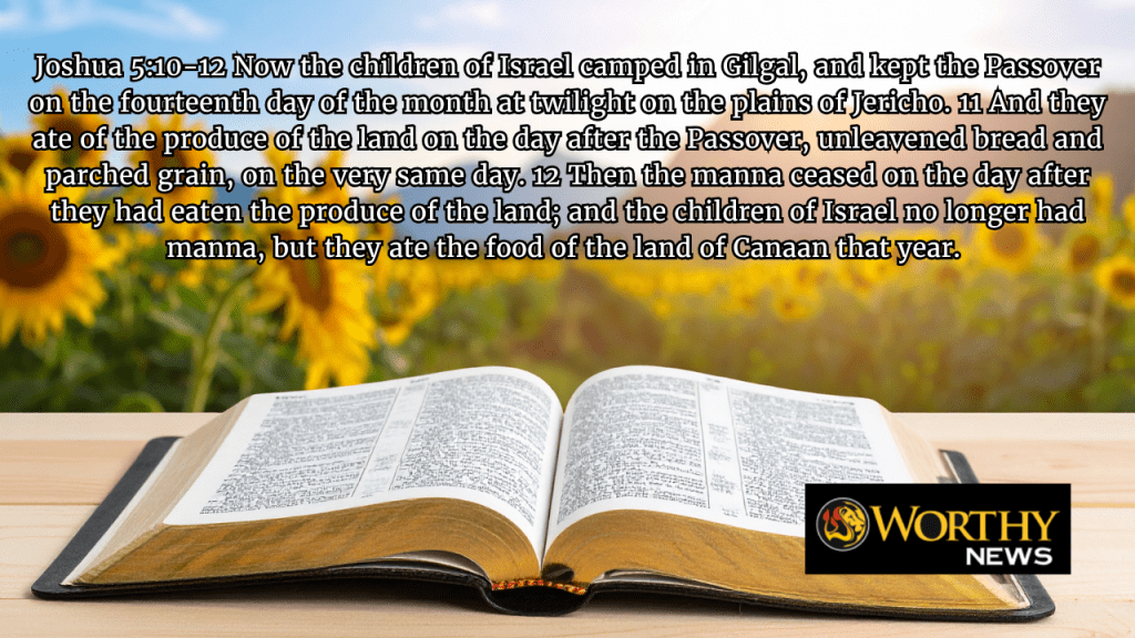 Joshua 5:10-12 Now the children of Israel camped in Gilgal, and kept the Passover on the fourteenth day of the month at twilight on the plains of Jericho. 11 And they ate of the produce of the land on the day after the Passover, unleavened bread and parched grain, on the very same day. 12 Then the manna ceased on the day after they had eaten the produce of the land; and the children of Israel no longer had manna, but they ate the food of the land of Canaan that year.