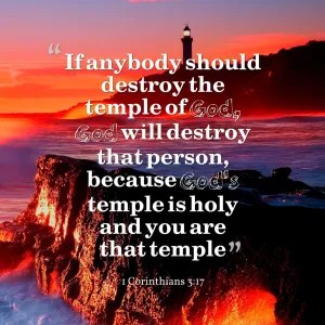 Know ye not that ye are the temple of God, and that the Spirit of God dwelleth in you? If any man defile the temple of God, him shall God destroy; for the temple of God is holy, which temple ye are. (1 Corinthians 3:16,17).